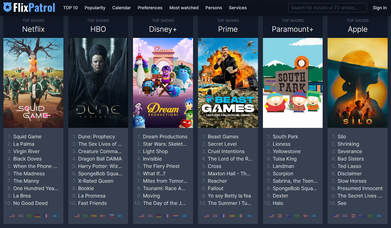 TOP 10 on Streaming in the World • FlixPatrol