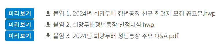 - 신청 서류 양식: 희망두배 청년통장 신청서식 (아래 링크 홈페이지에서 공고문과 서식을 확인)