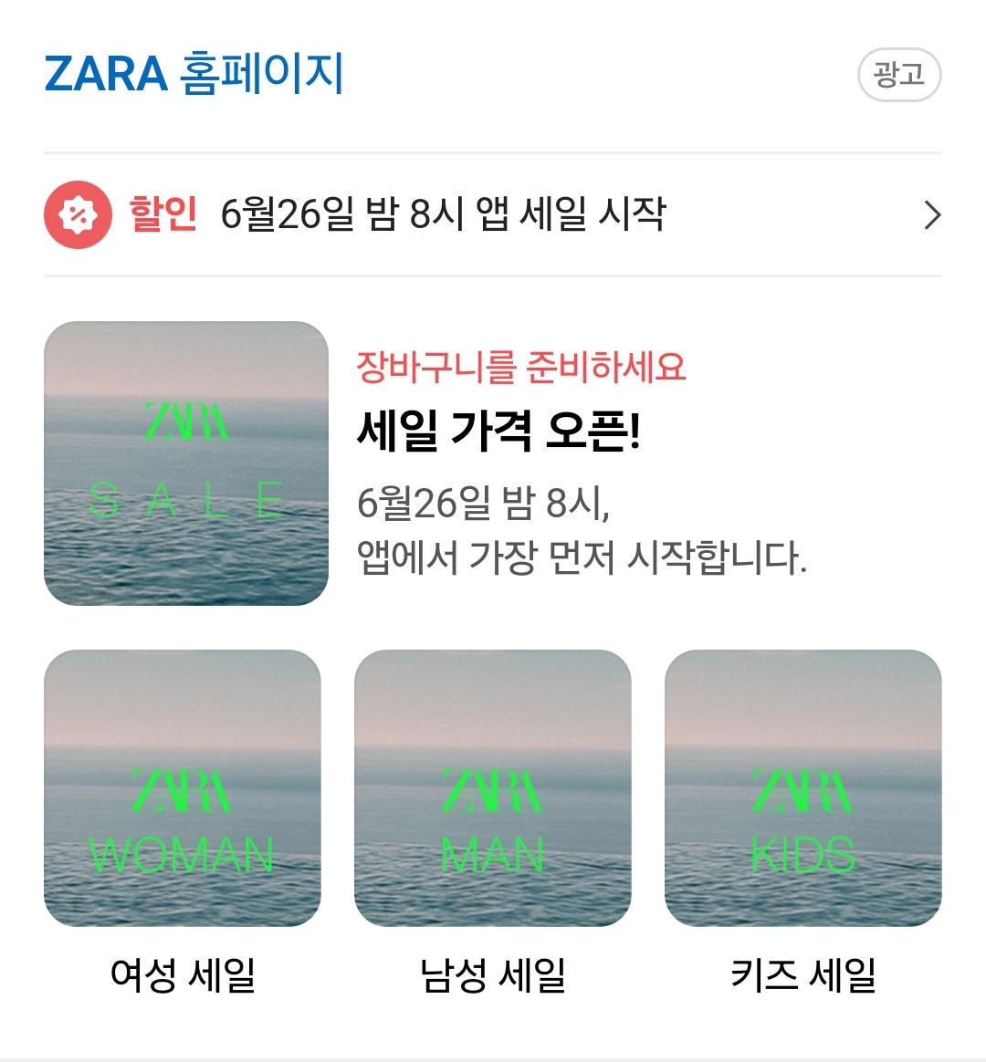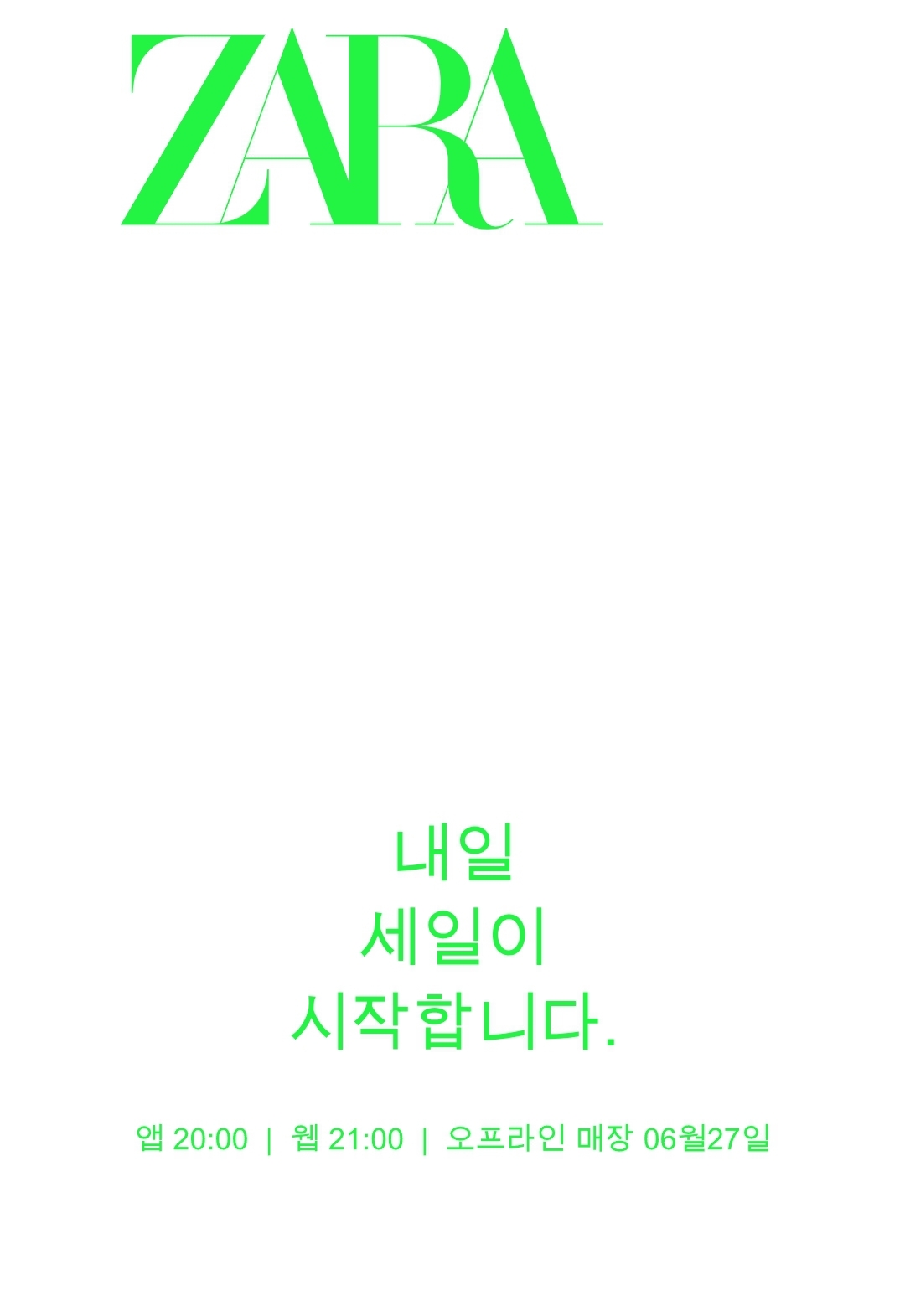 2024년 자라 세일은 6월 26일 수 밤 8시 자라 앱에서 가장 먼저 시작한다고 합니다!