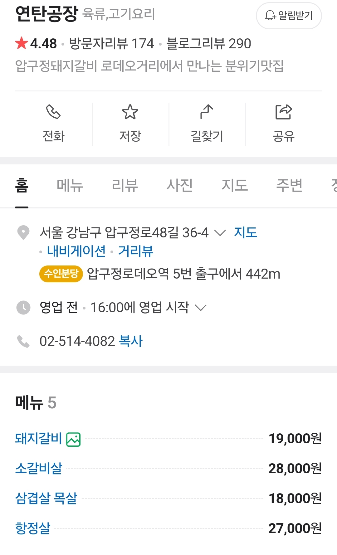 주소 : 서울 강남구 압구정로48길 36-4 (신사동)